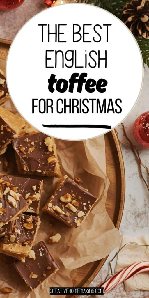 Buttery, crunchy, and coated in chocolate and nuts, English toffee is a Christmas candy favorite. It’s surprisingly simple to make at home and makes a beautiful holiday gift when wrapped in festive packaging.