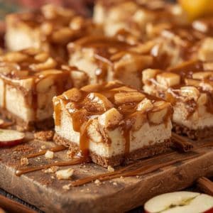 You’ll find layers of smooth cheesecake, gooey caramel sauce, and tender apples all sitting on a crunchy bite-sized crust. The mix of sweet and slightly tart flavors makes it a great way to enjoy apples in a new and tasty form. Once you taste it, you might find yourself making it over and over again.