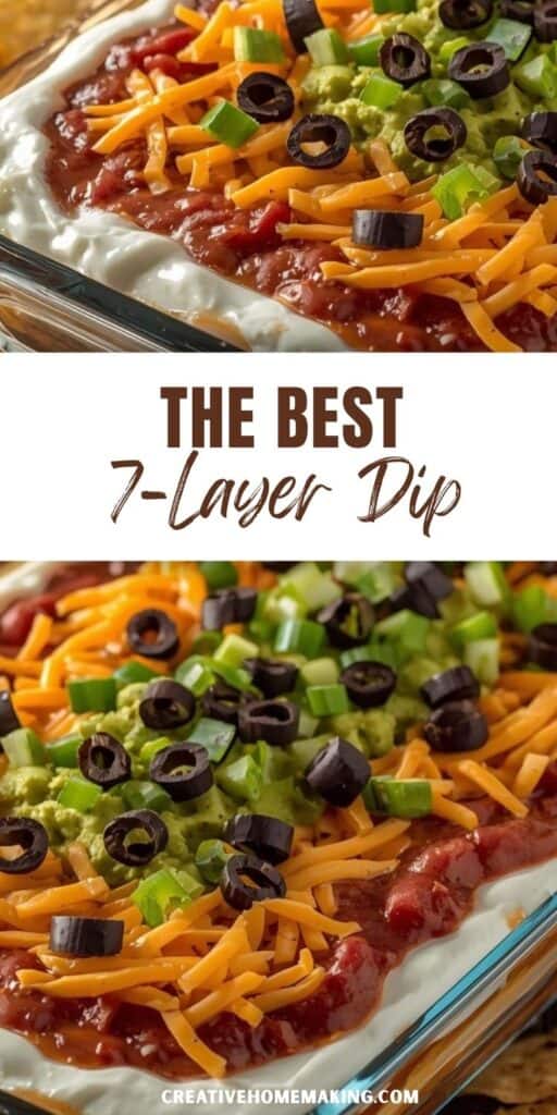 7-layer dip is perfect for game days, potlucks, or casual parties. It pairs well with cold drinks and other Tex-Mex dishes like tacos or quesadillas.