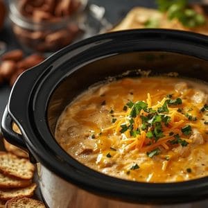 If you need the dip sooner, use the high setting for 30–45 minutes but watch closely and stir more often to prevent scorching. Serve warm with crackers, toasted baguette slices, or vegetable sticks.
