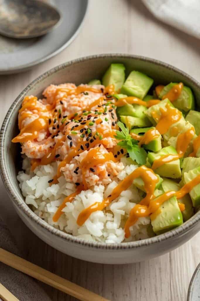 This recipe gives clear steps, a short ingredient list, and rice tips so you can build a fresh bowl with crab, avocado, cucumber, and spicy mayo. Prepare sushi rice first, then assemble bowls with layered toppings and sauces.