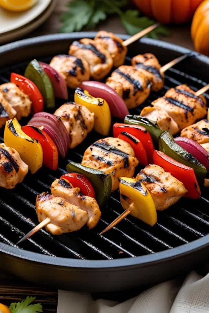 Tender chunks of chicken are marinated in olive oil, lemon, and herbs, then skewered with colorful veggies for a meal that’s as beautiful as it is delicious. You’ll love how simple this chicken recipe is to make, and it’s perfect as a quick weeknight dinner or even a fun weekend cookout.