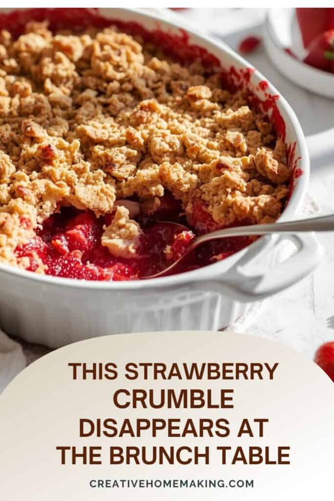 Plate the strawberry crumble thoughtfully for a brunch spread. Spoon portions into shallow bowls to show the syrupy filling and crunchy top.
