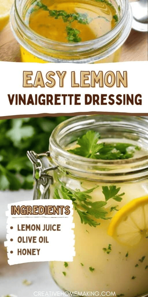 This lemon vinaigrette is fresh, balanced, and incredibly versatile — made with real lemon juice, good olive oil, a touch of Dijon, and just enough sweetness to round it out.