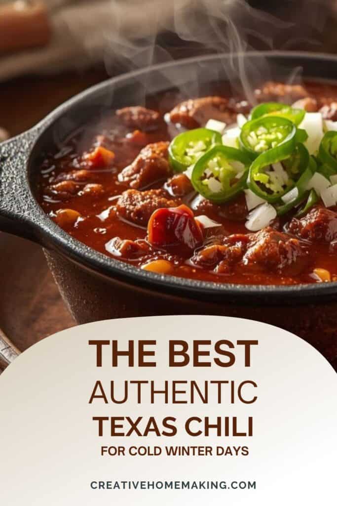 Don’t add beans or tomatoes if you want authentic Texas chili. They change the texture and flavor completely. Avoid boiling the chili; keep it on low heat to prevent tough meat.