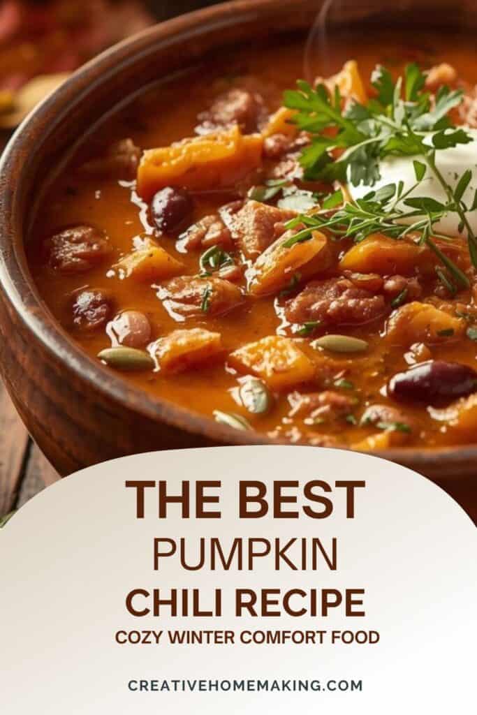 Pumpkin chili tastes great on its own or with simple sides. Try serving it with cornbread, tortilla chips, or steamed rice for a filling meal.